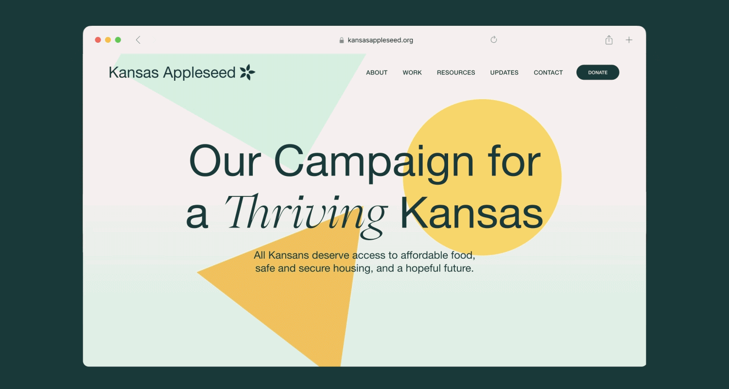 Robust visual identity and guidelines created for a Kansas nonprofit centered around warmth, accessibility, and approachable disruption. In collaboration with Hanan Shoubaki, web developer.